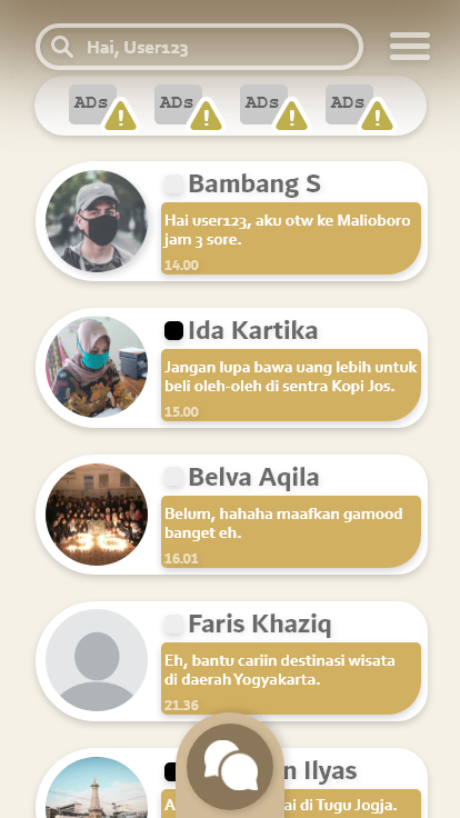 Pengguna dapat melakukan interaksi pesan kepada pengguna lain yang sudah terdaftar sebagai teman.