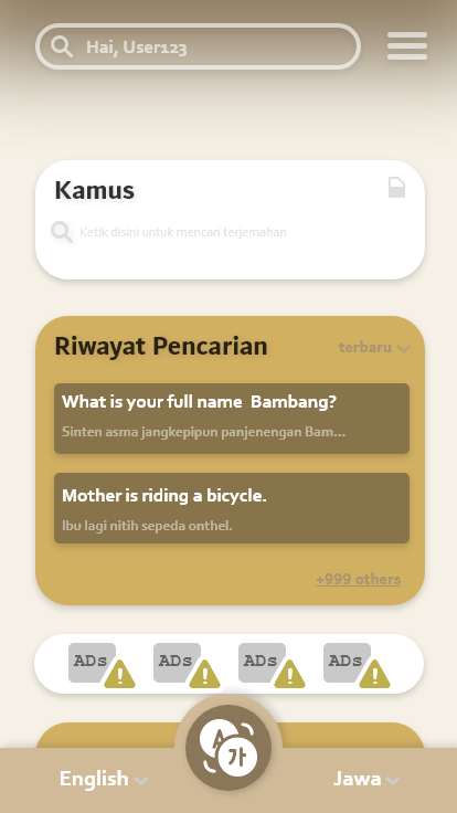 Translate untuk memudahkan pengguna dalam memahami bahasa.